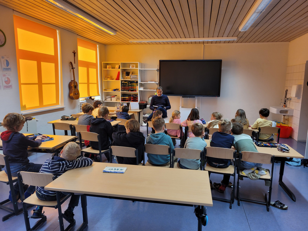Die Schülerinnen und Schüler freuen sich jedes Mal über den Besuch und durchstöbern neugierig die neuen Bücher.