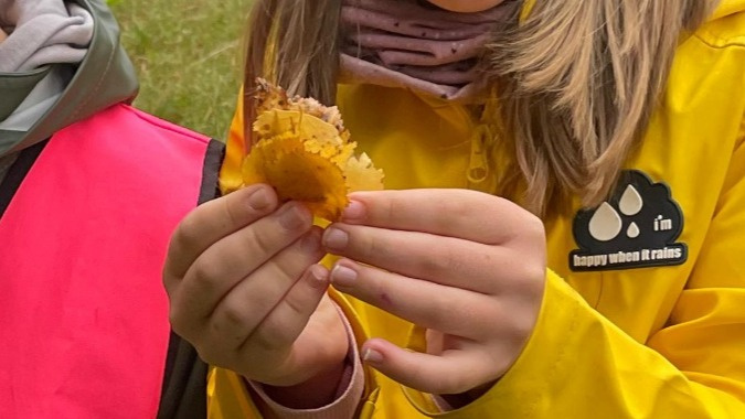 Unser erster Waldtag mit Förster Rafael Fetz von der Bodenseewaldschule. Wir haben den Wald erkundet, Pilze bestaunt und mit Blättern und Tannenzapfen Waldmandalas erstellt.